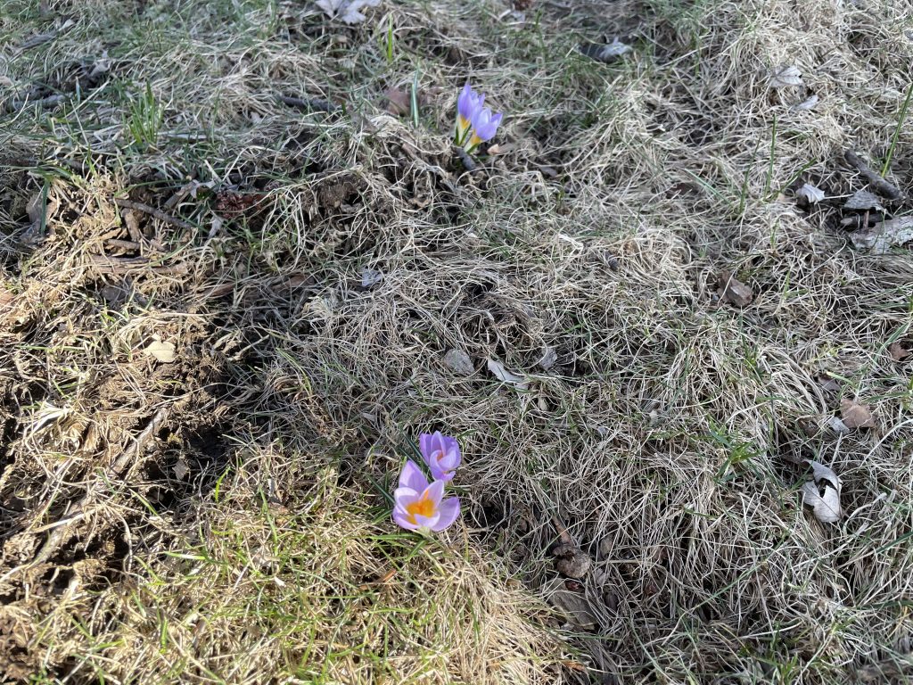 I have yet to observe crocus flowers, but they are starting to bloom. And with all the recent snow, it would appear that we’re beginning to return to a cooler seasonal climate.