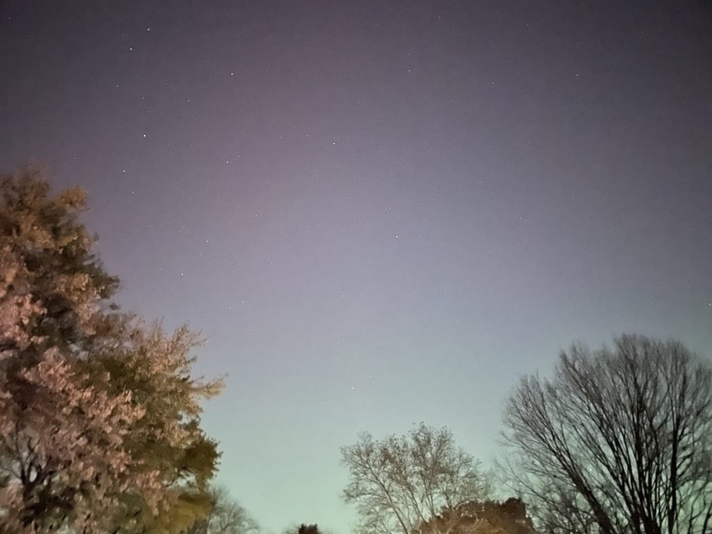 Solar activity was strong, with the potential to see it here in southwest Ohio! I went outside at the prescribed time, and no – it wasn’t visible. But supposedly an extended exposure photo will reveal the hidden radiation. So I gave it a go.
