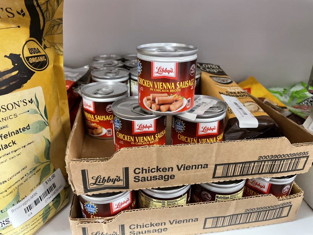 Then, just recently, some 28 years later, I took the kid to the liquidation outlet she likes to visit. Packed with mis-inventoried/lost/returned/written off shelves of all the crap Americans order through the mail, it’s a paradise for people possessing more time than money and trying to get a good deal on something random. Or, in my daughter’s case, someone who doesn’t know what to do with her allowance. And there, sitting on warehouse wire shelving, was a cardboard pack of Vienna sausage cans.