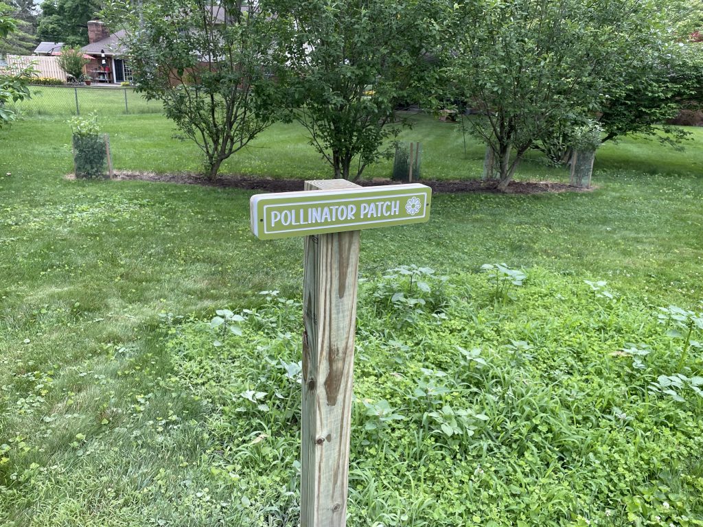 And here to help them along, I have dedicated a patch of my personal greenspace to benefit them! I offer up last year’s squash patch, which didn’t turn out too well. Too close to the greenbelt I think, and the deer helped themselves. So now it’s repurposed, with a custom sign to boot! Anniversary gift from Liz.